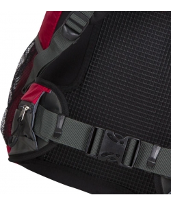Kromě hlavní kapsy má batoh dvě postranní kapsy ze síťoviny, tři kapsy na zip, na přední straně. Další kapsičky jsou na bederním páse.