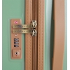 Horní i boční madlo je plastové. Vnitřní podšívka je vyrobena ze směsi bavlny a polyesteru. Ale hlavně má kufr jedinečný módní design…..